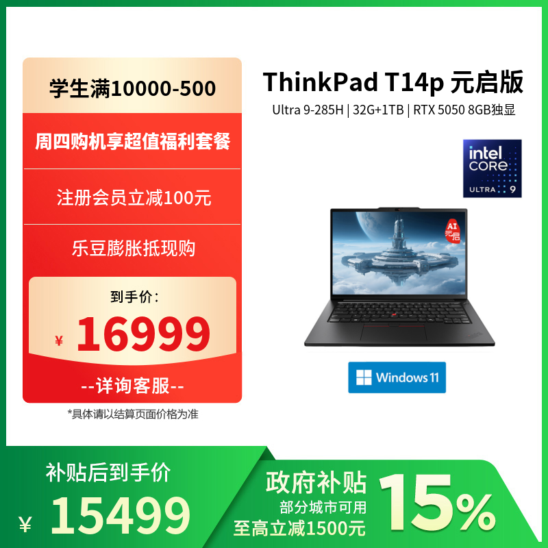 ThinkPad T14p 2025 AI元启 购买入口:点此直达