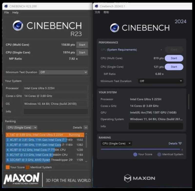 选它的核心原因,就是Ultra 5 225H处理器的强性能——14核14线程设计,最高睿频4.9GHz,Cinebench R23单核得分1974,多核得分15638,应付日常办公完全绰绰有余。