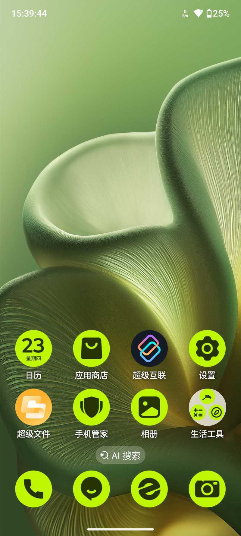这是我拿默认桌面加绿色壁纸 开了主题色的效果