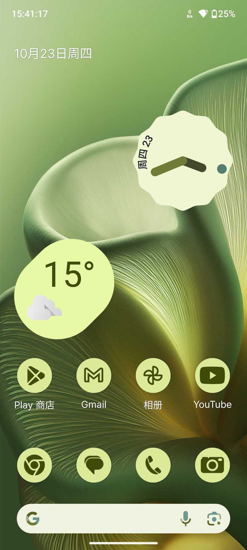 这是我拿第三方桌面启动器 配合colorblendr 照着pixel桌面仿的