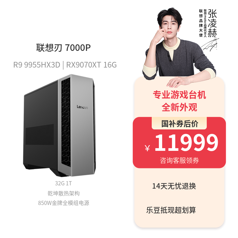 【专业电竞】联想 刃7000P AMD锐龙9 RX9070XT 游戏台机