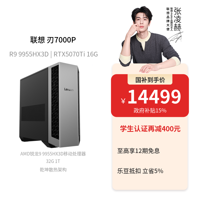 【专业电竞】联想 刃7000P AMD锐龙9 RTX5070 12G 游戏台机