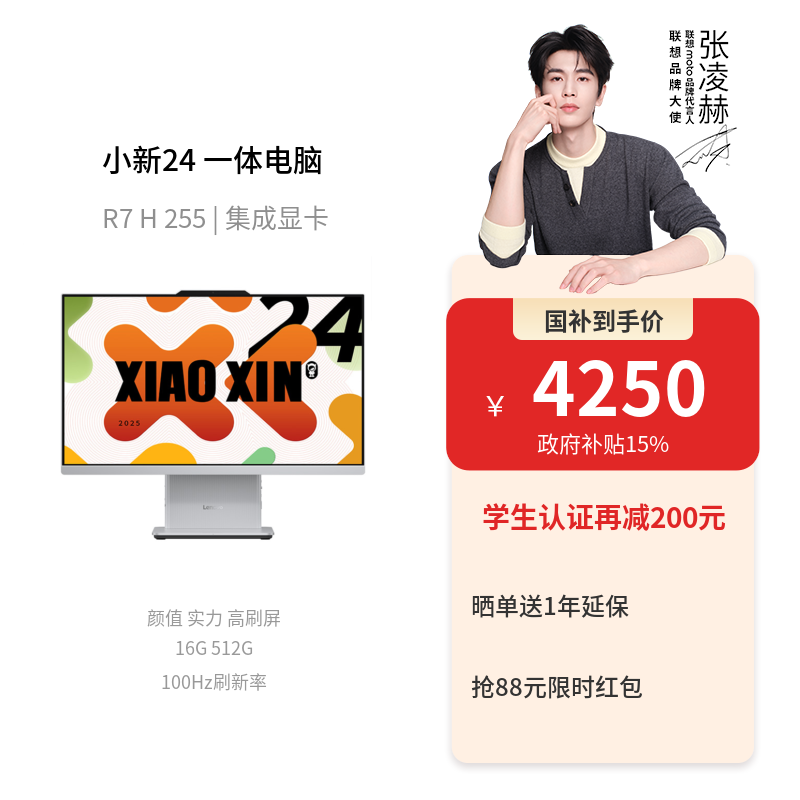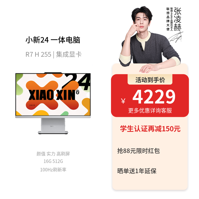 【娱乐家庭优选】小新24 2025锐龙版R7 高刷臻彩一体电脑 云影色