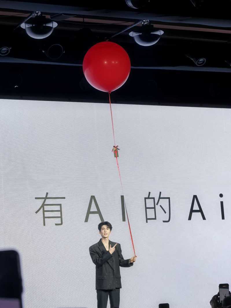接着品牌大使兼 moto 代言人张凌赫登场,他直接拉着气球上台,气球牵着的正是超轻薄的 moto X70 air,这个展示方式真的太有创意了,毕竟这手机仅 159g,厚度也只有 5.99mm,确实轻盈得像能飘起来。