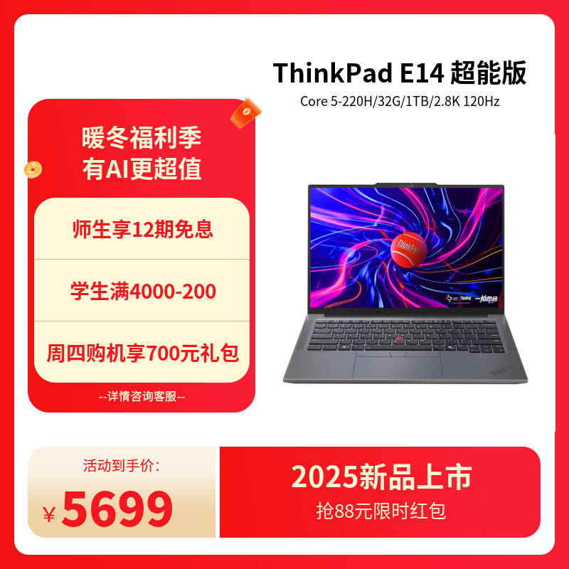 ThinkPad E14 2025 超能版 英特尔 Core 5 经典商务本 1XCD