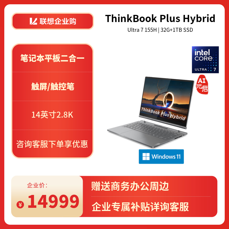 企业购ThinkBook Plus Hybrid 酷睿Ultra 7 平板笔记本二合一电脑