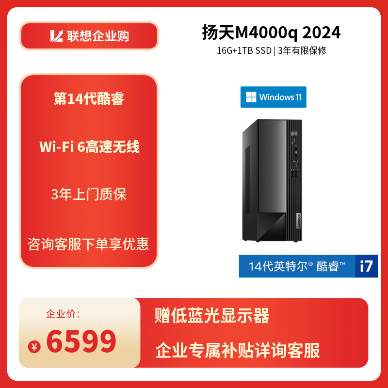 【企业购】扬天M4000q 2024 英特尔酷睿i7 商用台式机电脑 21CD