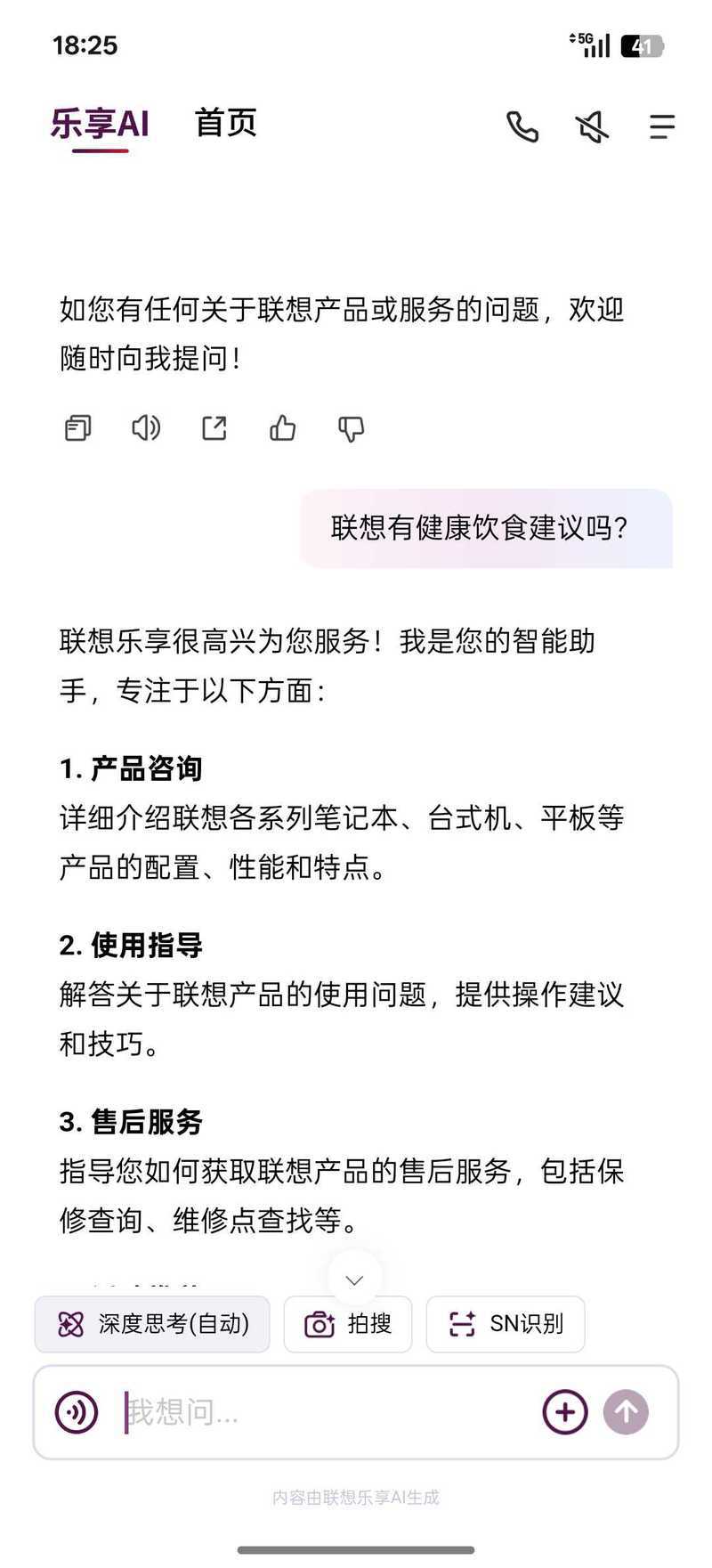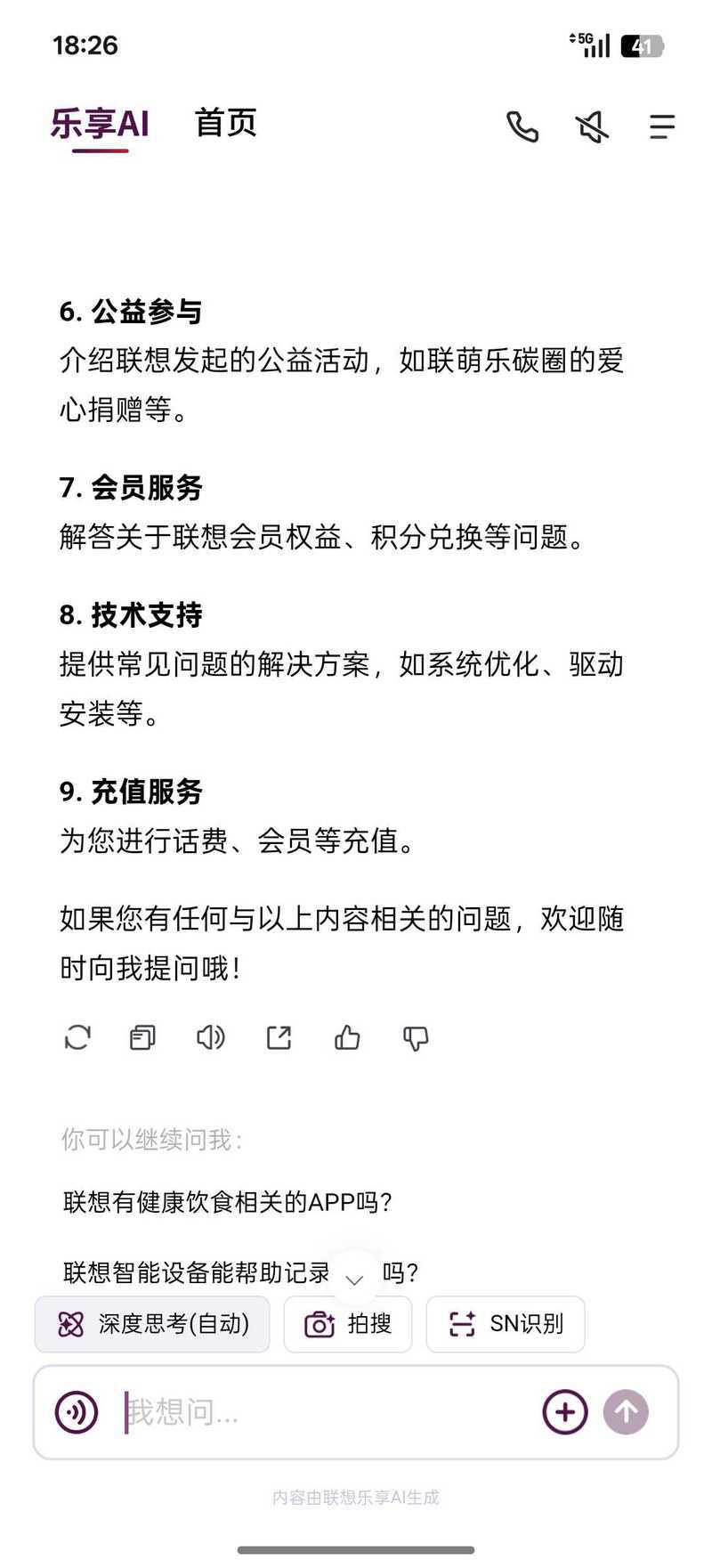 1.0目的和用途。联想可能基于人工智能功能为您提供反馈,此功能仅限用于为您提供联想产品和服务信息及其技术支持信息。联想无意通过本网站为公众提供任何一般性互联网内容服务,您应仅限于为了解联想、联想产品和服务信息,寻求联想产品和服务支持的目的使用本网站的人工智能功能,我们可能会拒绝、忽略或屏蔽任何非为此目的的使用。