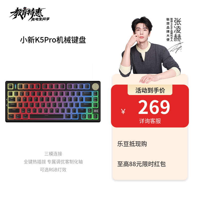 【三模连接】联想小新K5Pro客制化机械键盘 黑巧夹心 RGB HIFI音