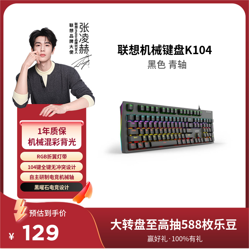 联想一键服务机械键盘K104 黑色 青轴