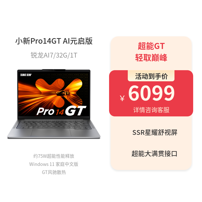例如小新Pro14GT AI元启版,采用金属机身,配备高性能处理器和大容量内存,适合需要轻薄便携和高性能的用户。