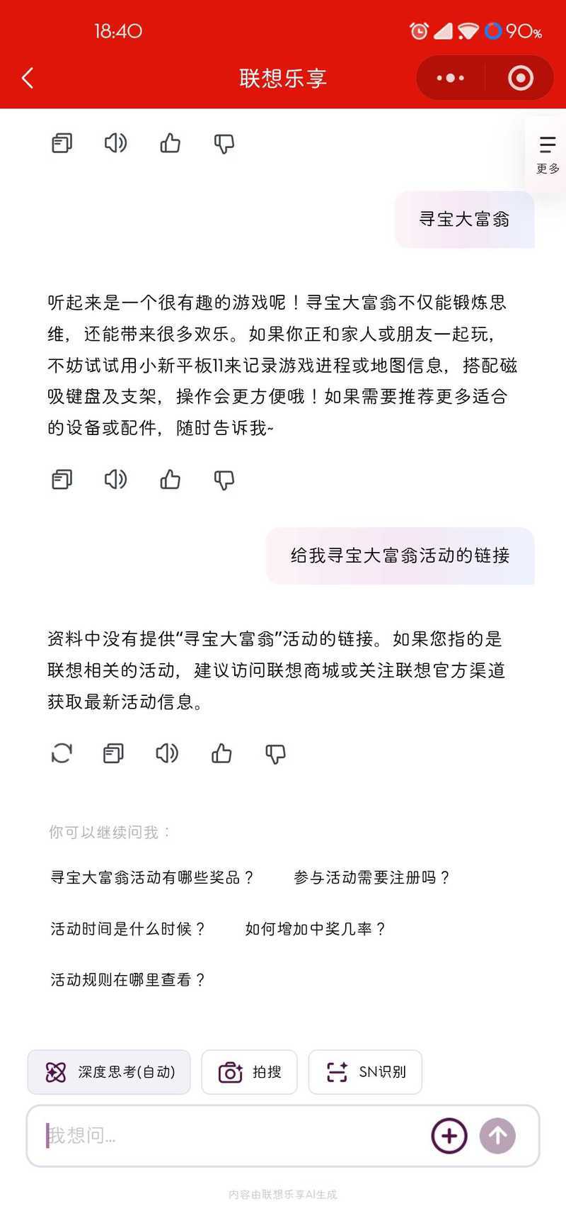 我想再次进入寻宝大富翁参加活动,但是乐享他并不知道有这个活动。不能只做口令类型的,要不然AI和老客服有什么区别? |