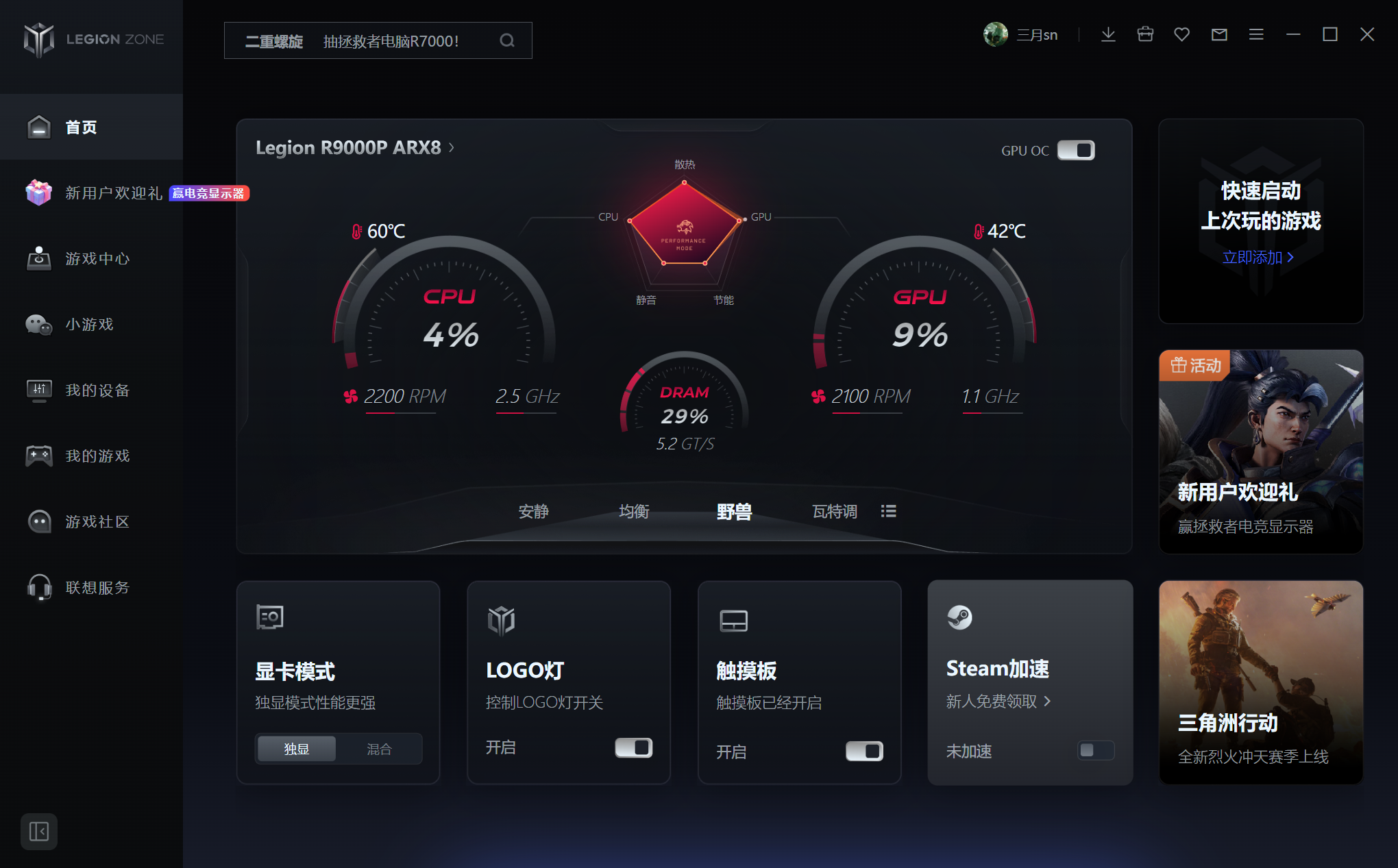 联想拯救者R9000P 2023版的性能模式切换与电源管理可通过以下方式优化: