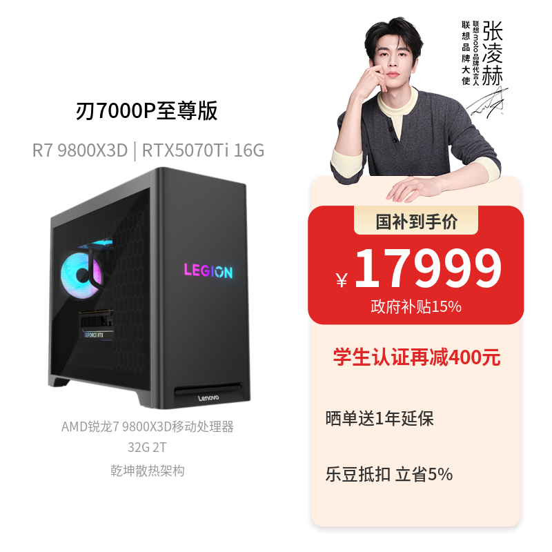 【专业电竞】拯救者 刃7000P至尊版 9800X3D 5070Ti游戏台式机