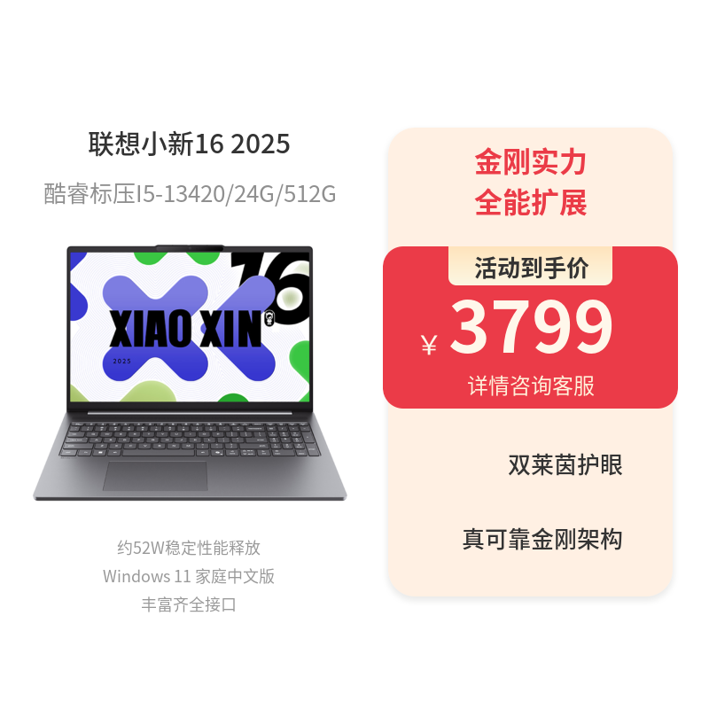 小新 15 SE 2025:配备酷睿i5-13420H处理器,16GB DDR5内存,512GB SSD,15.3英寸DC调光护眼屏,支持超级互联和多设备协作,接口丰富,适合办公与学习场景,价格为3499元。