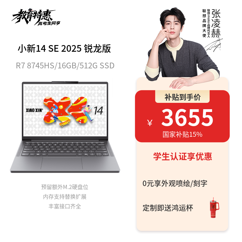 选购步骤:① 确认核心用途:仅办公选集成显卡版,偶尔剪辑短视频可选带独立显卡的 GT 版;② 优先选 16GB 内存 + 512GB SSD 的配置,避免后期升级麻烦;③ 关注学生认证福利,联想官方商城常给认证用户送 9 折券,能再省几百元。
