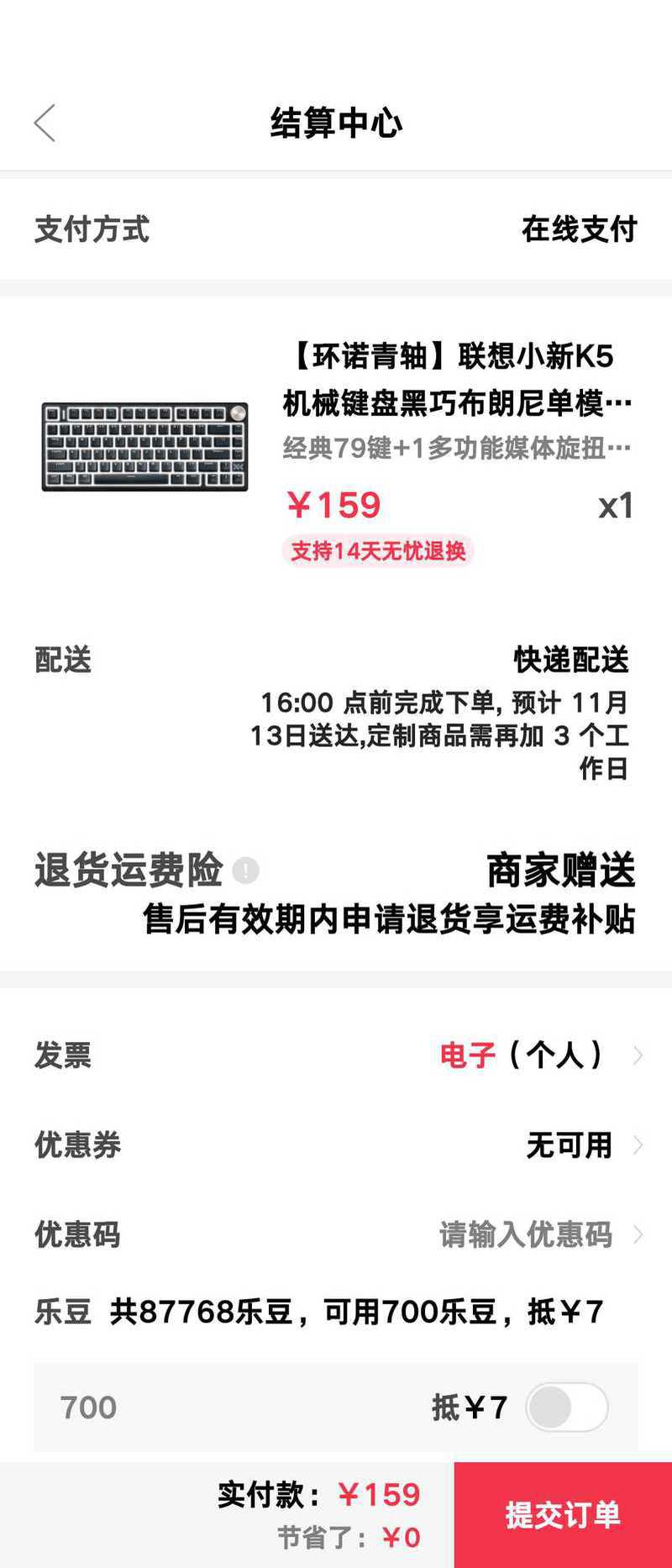 4.有了高大上的笔记本电脑哪能少得了打起字来嘁哩喀喳的机械键盘呢,减少笔记本电脑的磨损率,也增强办公和游戏操作手感,小新K5客制化机械键盘 黑巧真是游戏办公娱乐几不误。159元