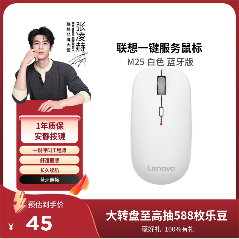 联想一键服务鼠标M25 白色 蓝牙版