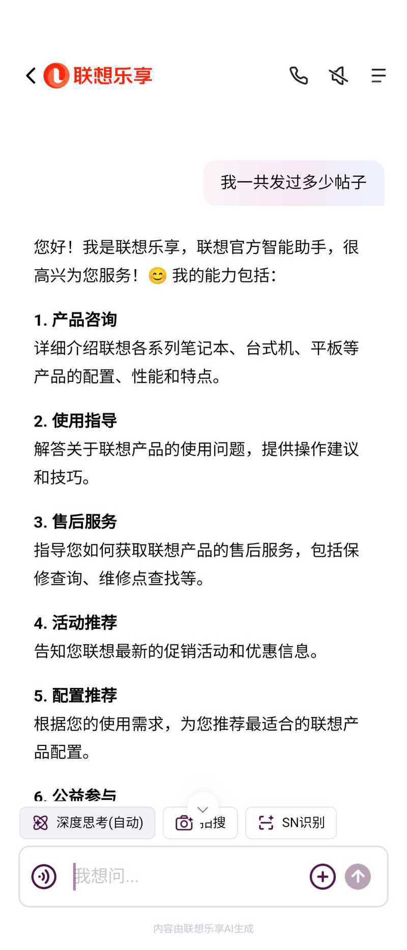 1.0目的和用途。联想可能基于人工智能功能为您提供反馈,此功能仅限用于为您提供联想产品和服务信息及其技术支持信息。联想无意通过本网站为公众提供任何一般性互联网内容服务,您应仅限于为了解联想、联想产品和服务信息,寻求联想产品和服务支持的目的使用本网站的人工智能功能,我们可能会拒绝、忽略或屏蔽任何非为此目的的使用。