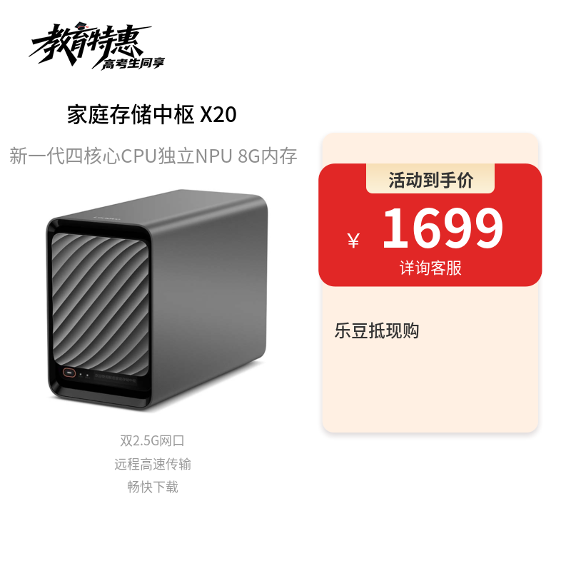 说完电竞属性,那么极客呢,接下来就是啦,发烧极客友最喜欢的网络设备,一个是路由器,一个是存储中枢NAS。作为发烧极客,我们肯定喜欢捣鼓,一个稳定的路由器联想R1,WiFi6双模式联网,拥有ARS旗舰芯片,高性能信号放大,大幅度提升设备的信号,全能小巧路由,能够经得起折腾。让极客们两眼放光的是什么,当然是NAS,联想家庭存储中枢X20,它提供的是新一代四核心CPU独立NPU,8G内存,性能超级强悍,通过强大的本地网关管理能力指挥调度全屋智能设备,集边缘计算、家居控制、AI识别于一体的智慧大脑,搭配联系智能生态,数据备份,家庭式相簿超级方便。它就像一个保险箱,保护家庭每个人的数据安全,存储中枢X20的存在,让发烧极客创造提供快捷方便,存数据控全屋,开启智慧型生活!