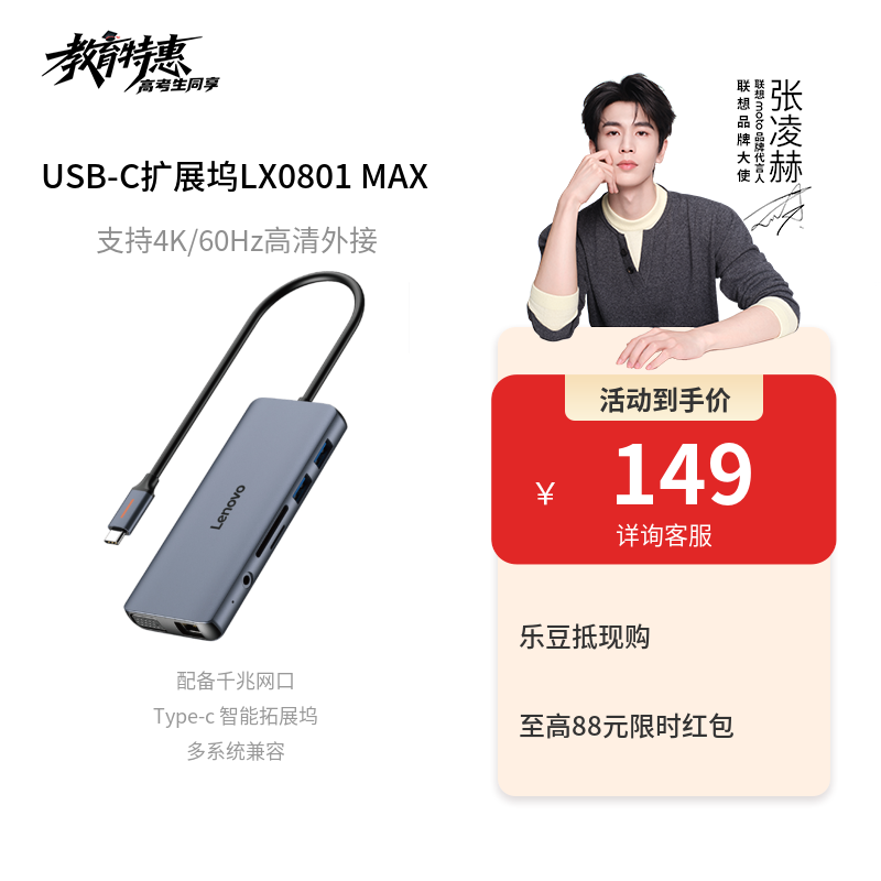 拓展坞为联想USB-C扩展坞LX0801 MAX 价格为149元