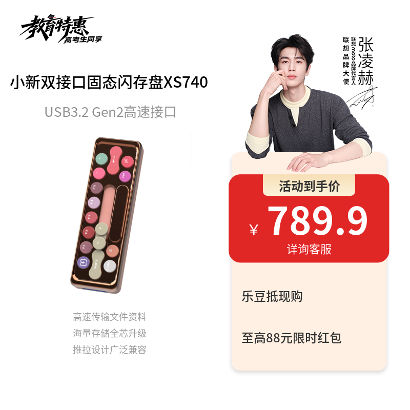 固态U盘为联想小新双接口固态闪存盘 XS740 玫瑰金(1TB) 价格为559.9元