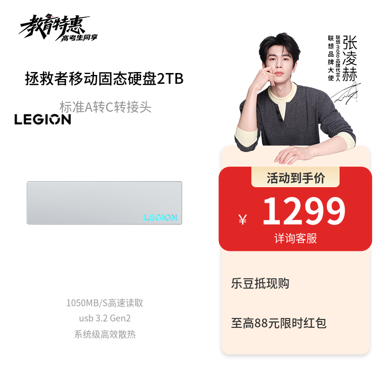 移动硬盘为【高速传输】 联想拯救者移动固态硬盘2TB1050MB/s高速SSD双接口 价格为999元