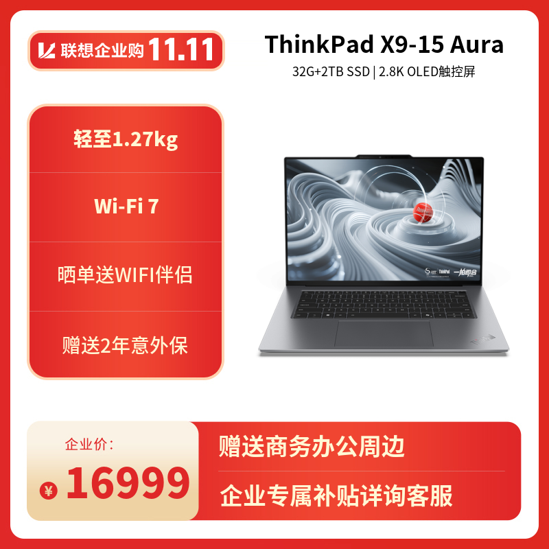 企业购ThinkPad X9-15 Aura 酷睿Ultra9 精英商务本AI元启版 2JCD
