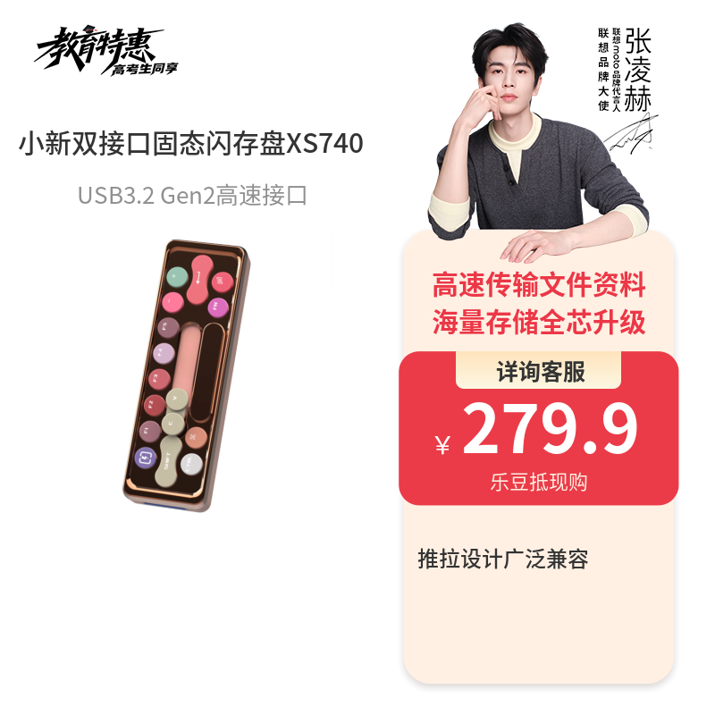 联想小新双接口固态闪存盘 XS740 玫瑰金(256GB)