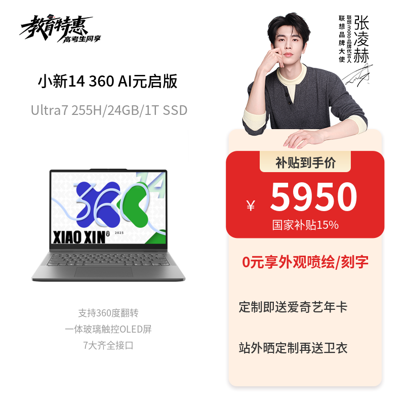 笔记本为联想小新14 360 AI元启版14英寸轻薄翻转笔记本电脑 深灰色 价格为6999元