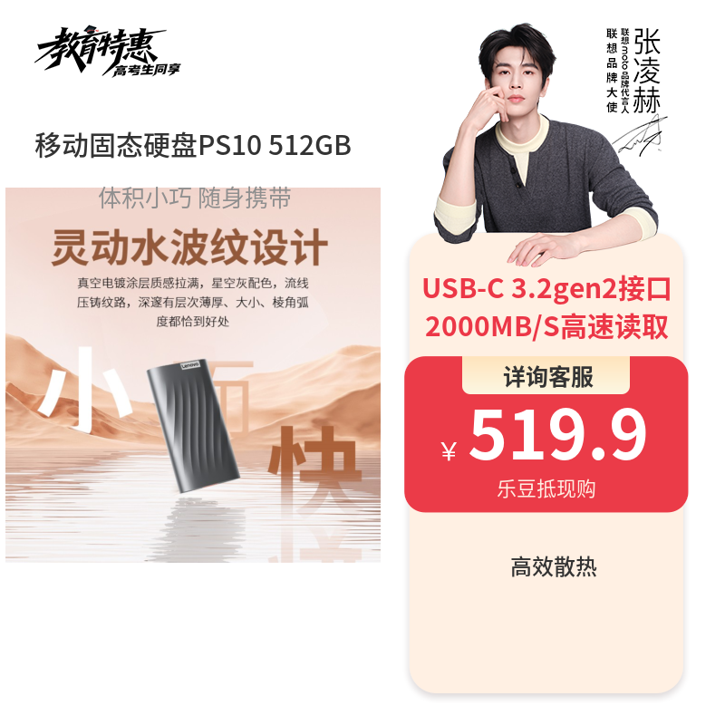 您好,联想乐享很高兴为您服务!在世界大学生日之际,联想特别推出“热AI双11 移动固态硬盘PS10 记忆涟漪”创意活动,将水波纹外壳设计与“流出记忆之河”巧妙结合,象征大学生活点滴的珍贵存储,同时突出其超大容量与便携性能,为大学生们带来专属创意体验。目前联想移动固态硬盘系列参与促销活动,如PS6系列支持限时红包抵现和以旧换新,欢迎前往联想商城了解更多详情和优惠信息!
