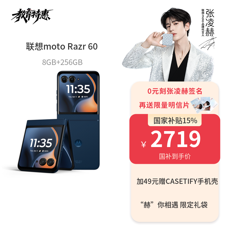 【张凌赫同款】联想moto razr 60 8GB+256GB 午夜苍蓝