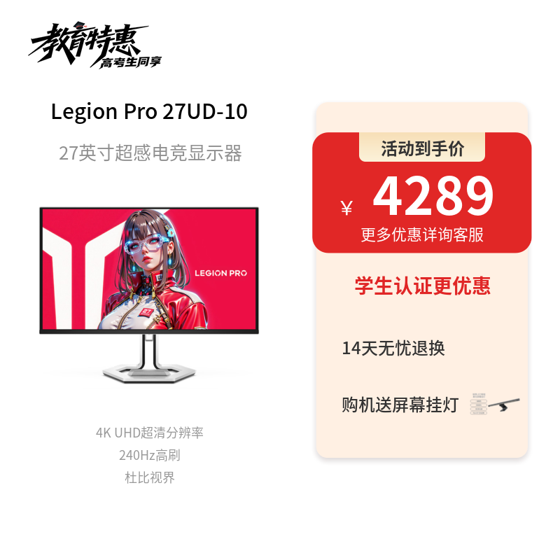 8035769 1、[backcolor=rgba(0, 0, 0, 0.04)]【高端电竞】拯救者Legion Pro 27UD-10 240HZ QD-OLED超感电竞显示器; [color=rgba(0, 0, 0, 0.85)]240Hz 高刷新率 + QD-OLED 面板,画质细腻流畅,色彩表现惊艳,为游戏玩家带来丝滑且逼真的视觉体验,精准捕捉游戏细节。