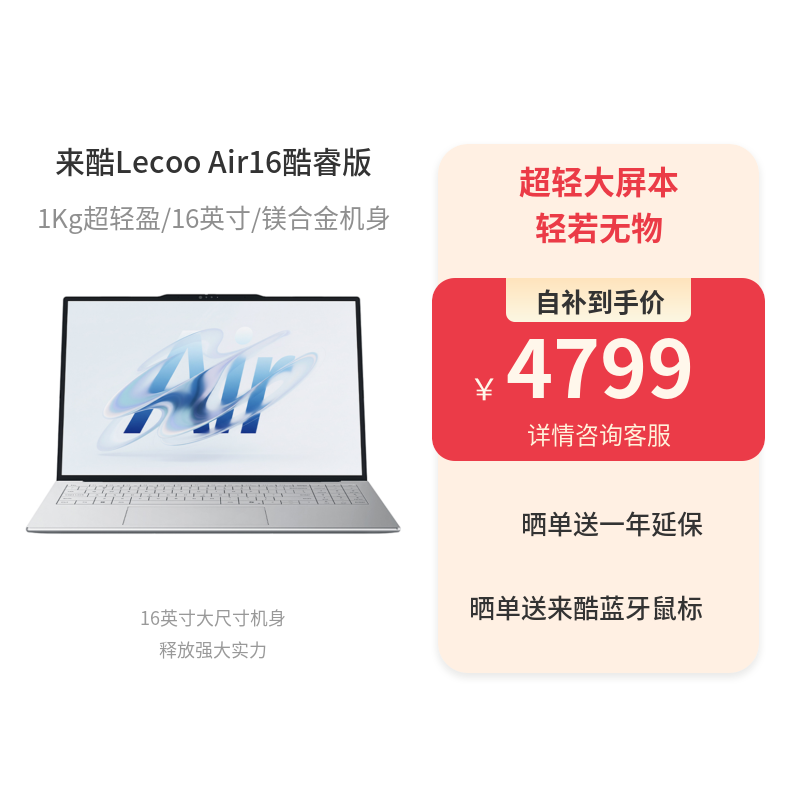 那么这台1kg轻、1cm薄的来酷Air 16酷睿版,就是你的最终答案!