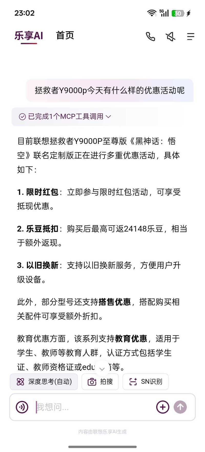 问了一下联想乐享AI拯救者Y9000p2025款,今天有什么样的优惠活动呢?