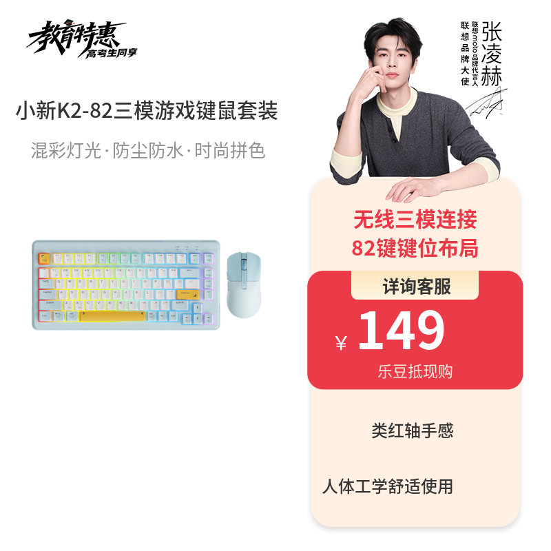小新 键鼠套装:联想小新K2-82三模游戏键鼠套装,支持有线、2.4G无线和蓝牙三模连接,兼容Windows与Mac双系统,键盘采用类红轴手感,静音设计,适合游戏与办公场景。鼠标支持五档DPI调节,续航持久,适合长时间使用,价格149元,是多设备用户的理想选择。