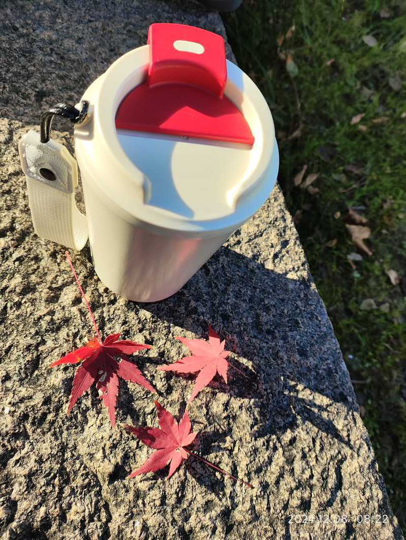 悠闲自在的生活,秋天的一天。红叶+咖啡