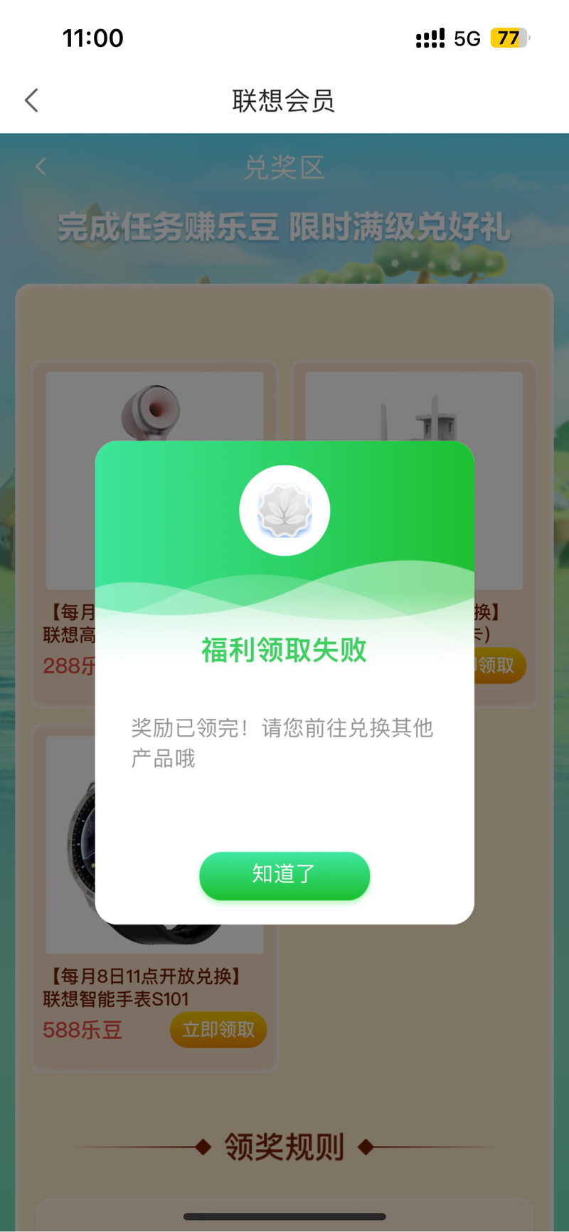 上月初萌宠好不容易升级到5级满级了,参加联想会员的满级兑换礼,然而准点兑换显示“奖励已领完”,客服让我这个月再试试,而等到这个月8号11点再次兑换,仍然是兑换不到。不知道官方发了多少数量的礼品,为何满级兑换还要抢购?而且还限制了需要在30天内完成兑奖。那始终兑换不到不就白白作废了吗?希望联想能看到这个反馈,尽快给予有效答复,别让会员寒心。不知其他朋友有遇到过相同情况吗?若有,可跟帖。 |