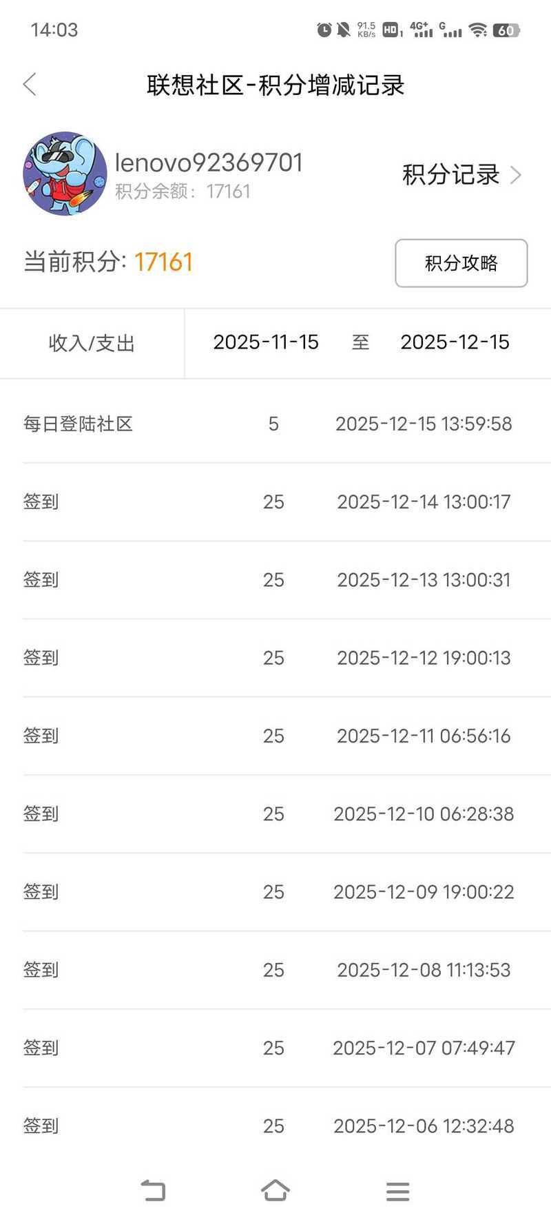 账号仅供会员用户用于获得联想产品和服务信息及相关支持。您不得将账号用于未明确允许的任何商业目的,例如,向第三方转售任何内容或信息。您应自行对您的账户、用户名或密码下发生的行为负责,包括通过账户发布或传送的任何内容。除非严格按照联想制定的和预期的要求获得积分,否则积分是无效的,您不得试图通过任何模仿符合要求的手段(包括但不限于使用任何脚本、机器人或其他自动化手段)获得积分。