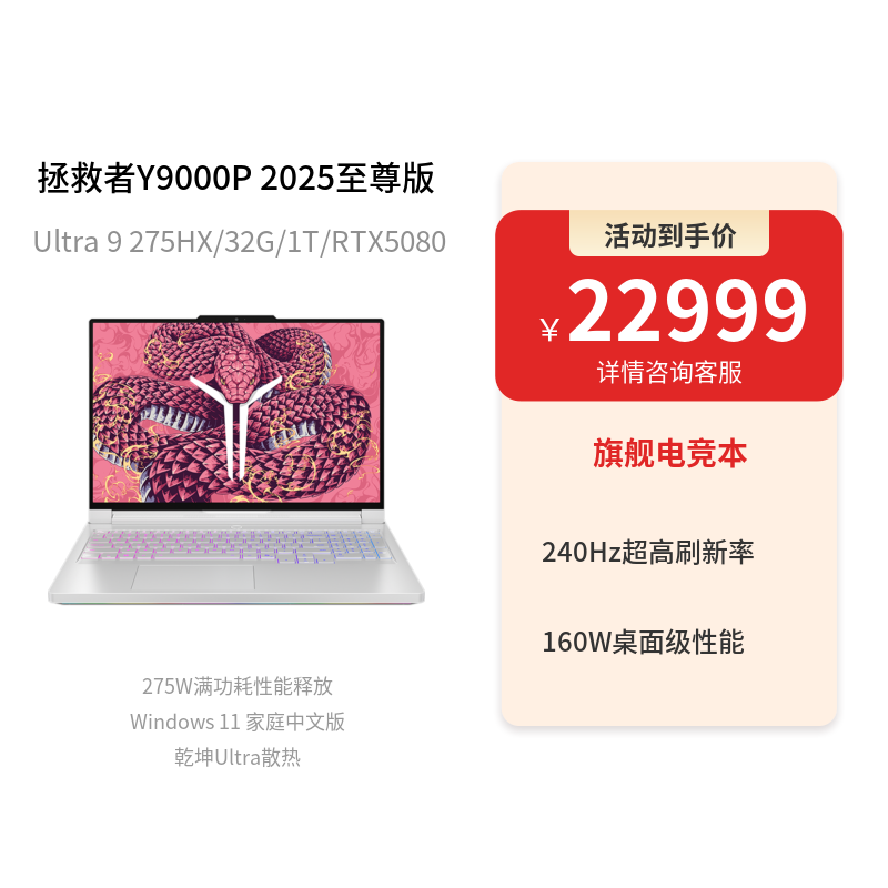 联想拯救者Y9000P 2025 至尊版 16英寸电竞笔记本电脑 冰魄白