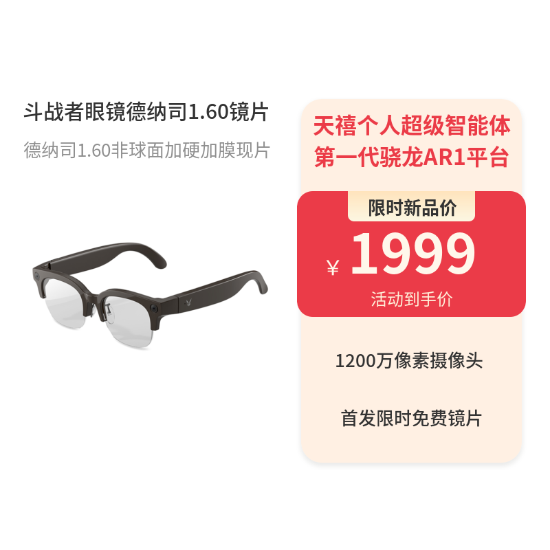 斗战者天禧智能体眼镜+德纳司1.60非球面加硬加膜现片