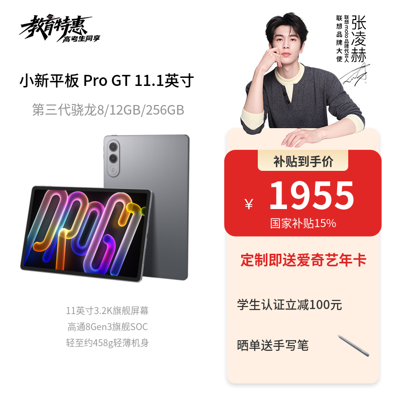 【张凌赫同款】联想小新平板 Pro GT 11.1英寸学习影音办公 AI平板电脑 信风灰