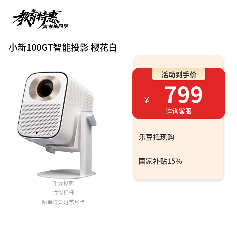 您好,感谢您选择联想小新100GT智能投影!这款投影仪以其白瓷质感的机身设计,为小空间增添了一份优雅与温暖。在15平米的小客厅中,小新100GT不仅能够提供出色的观影体验,还能通过其精致的外观为您的生活空间增添一份格调。希望它能为您带来更多的欢乐时光!如果您有任何使用上的问题或需要进一步的帮助,欢迎随时联系我。