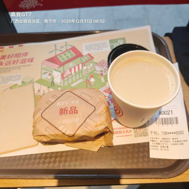 早餐肯德基芝士牛肉蛋帕尼尼豆浆二件套¥13.3