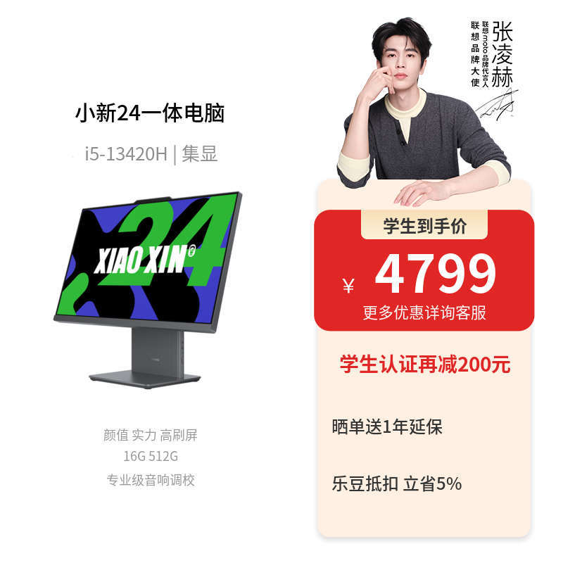 【娱乐家庭优选】小新24 酷睿i5-13420H 16G/512G 23.8英寸 一体电脑 深色