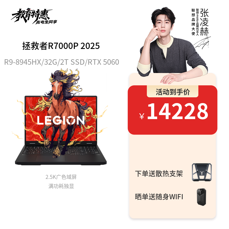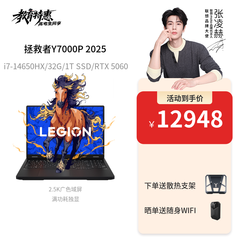 拯救者 Y7000 2025:搭载i7-14650HX与RTX 5060,32GB内存与512GB SSD,180Hz 2.5K高刷屏,170W双满功耗散热系统,整机仅2kg,兼顾性能与便携,适合多场景使用。