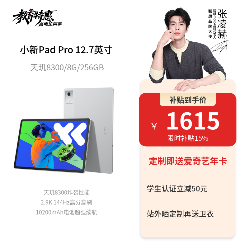 【张凌赫同款】联想小新 Pad Pro 12.7 2025款 12.7英寸 影音娱乐学习办公平板电脑 霜雪银