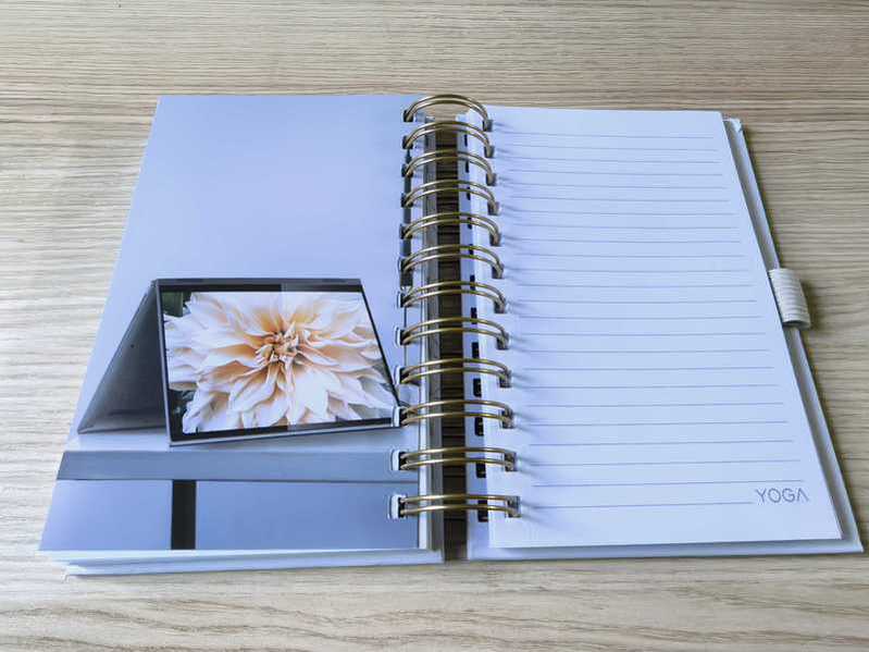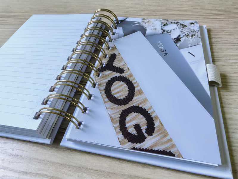 纯白封面上,金色的“YOGA”线条在光影里流动,像把都市的精致感都揉进了这本小小的线圈本里。