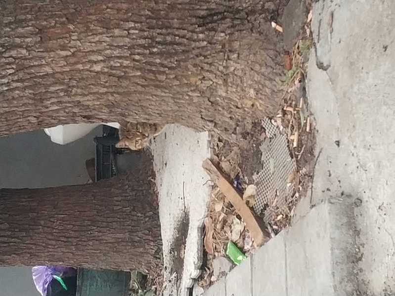 小猫咪躲在树后偷偷看我哈哈哈可爱