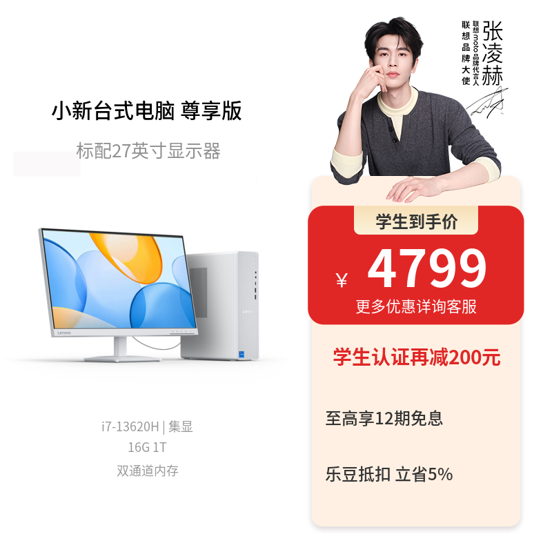 【家用办公组合套机】小新台式电脑 尊享版 英特尔13代酷睿i7+27英寸显示器